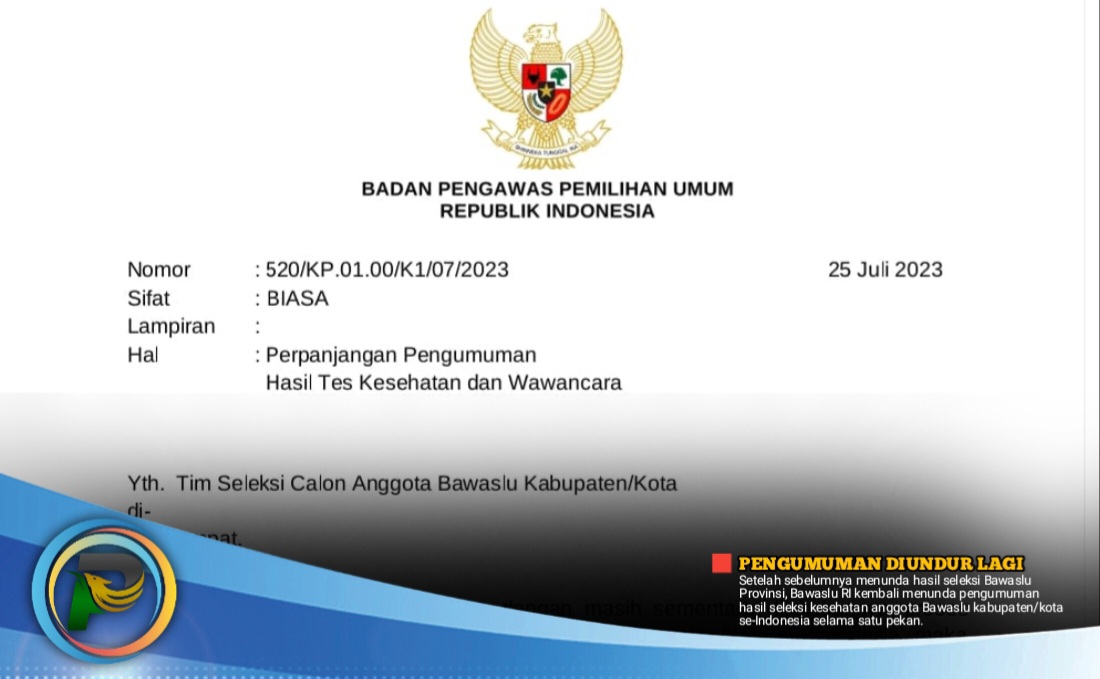 psiaceh.or.id/ – Setelah sebelumnya menunda hasil seleksi Bawaslu Provinsi, Bawaslu RI kembali menunda pengumuman hasil seleksi kesehatan anggota Bawaslu kabupaten/kota se-Indonesia selama satu pekan.