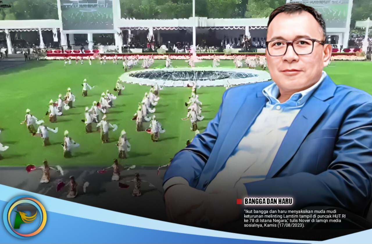 “Ikut bangga dan haru menyaksikan muda mudi keturunan melinting Lamtim tampil di puncak HUT RI ke 78 di Istana Negara,” tulis Nover di lamqn media sosialnya, Kamis (17/08/2023).